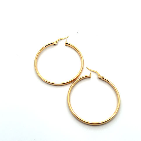 - イタリア製、9金 イエローゴールドのフープピアスです。